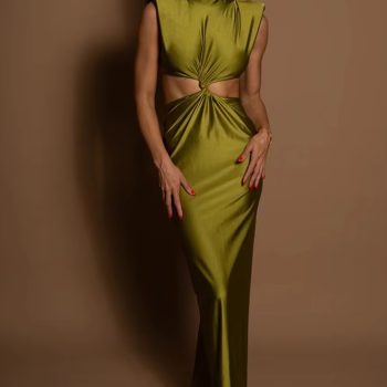 New York’s Fashion Hollow Out Backless Ruched Maxi Dress For Women Robe Elegant Spaghetti Strap Sleeveless Bodycon Party Long Dress