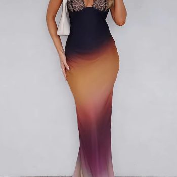 New York’s Fashion Lace Halter Sexy Maxi Dress For Women Gown Fashion Strapless Sleeveless Backless Lace-up Bodycon Print Long Dress