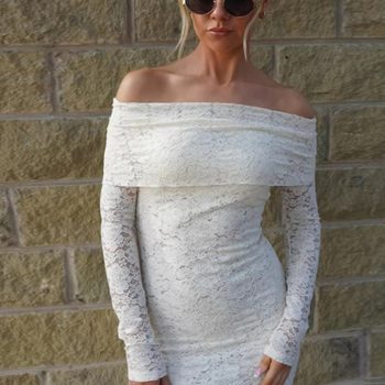 New York’s Fashion Lace Off-shoulder Sexy Maxi Dress For Women White Strapless Long Sleeve Backless Bodycon Club Party Sexy Long Dress