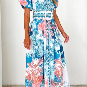 New York’s Fashion 2025 Summer Fashion New Women’s Elegant Printed Dress Casual Waist Loose Short Sleeve Commuter Robe