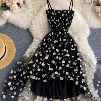 New York’s Fashion Casual Dresses For Women Cover Ups Floral Sleeveless Spaghetti Strap Backless Mid Long Free Size Sun Black Skin Pink Dress