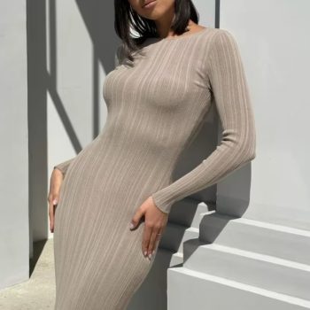 New York’s Fashion Autumn Long Sleeve Knitted Maxi Dress Women Elegant Sexy Pit Strip O-Neck Bodycon Evening Party Dresses 2024 Lady Casual Dress