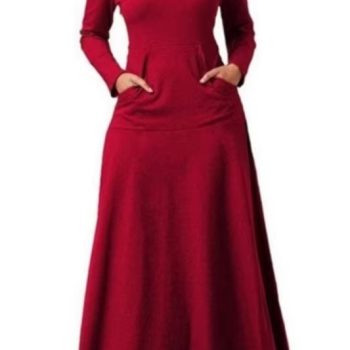 New York’s Fashion Autumn Winter Solid Color Splicing Pocket Neck Large Pendant Long Dress 2025 Casual Women’s High Waist Long Sleeve Maxi Dresses