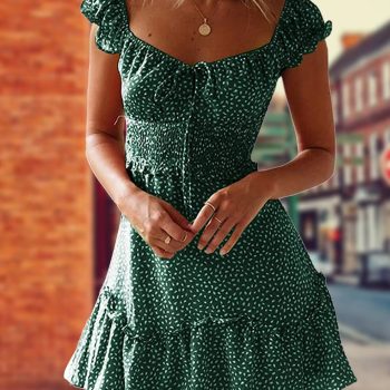 New York’s Fashion Dress For Summer 2024 Elegant Casual vogue Sexy Dresses A Line Short Sleeve Mini Length Print Neckline Women’s Holiday Sundress