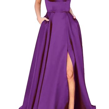 Newyorks Fashion Women Wedding Evening Party Dress With Pockets Elegant Halter Backless Crisn Satin Spaghetti Party Prom Dresses Side Slit Cloth