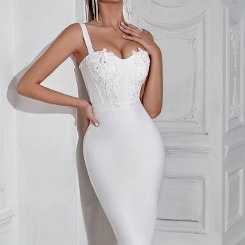 New York’s Fashion 2024 New Summer Spaghetti Strap Bandage Dress For Women Sexy Sleeveless Evening Embroidered Night Party Dresses Vestidos