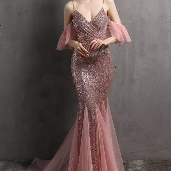 New York’s Fashion 2024 Pink Off Shoulder Party Dress Women Sexy Strap Dress Sequin Evening Dress Long Prom Dress
