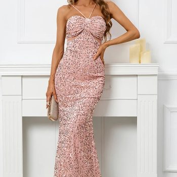 New York’s Fashion Backless Pink Sequin Dress Sexy Bar Long Party Evening Dresses Luxury Velvet Stretch Off Shoulder Cocktail Prom Dress