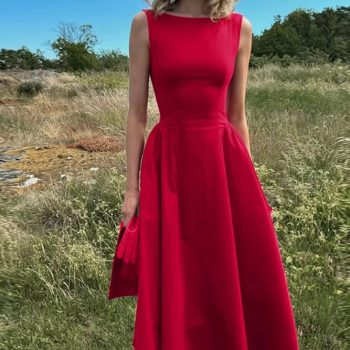 New York’s Fashion Backless A-line Maxi Dress For Women Fashion Solid O Neck Sleeveless Long Dress Ladies Gown High Waist Tank Dresses