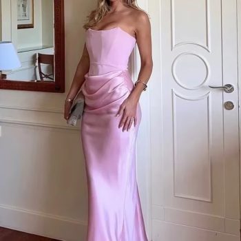 New York’s Fashion 2025 Women’s Evening Dress Strapless Pink Prom Party Dresses Sexy Satin Long Corset Dress Elegant Maxi Gala Dresses