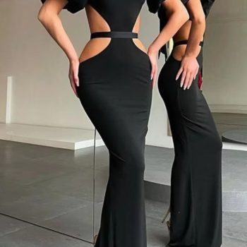 New York’s Fashion 2025 new open back bow tie sexy long skirt bubble sleeve banquet evening dress hip slim dress