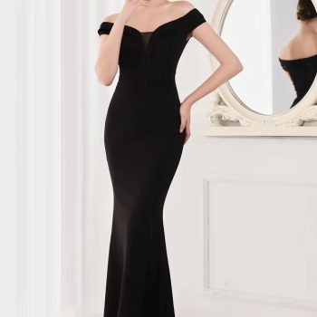 New York’s Fashion Elegant Black Dress Soft Satin Long Evening Dress Off Shoulder Formal Party Prom Dress