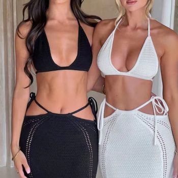 New York’s Fashion Sexy Sleeveless Skirt Two Pieces Sets For Women V-neck Hollow Out Crop Tops And Long Skirt Patchwork Two Pieces Sets