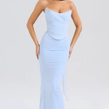 New York’s Fashion Elegant Strapless Sexy Two Piece Set Women Sleeveless Crop Top And High Split Skirt Matching Sets Party Dress Sets