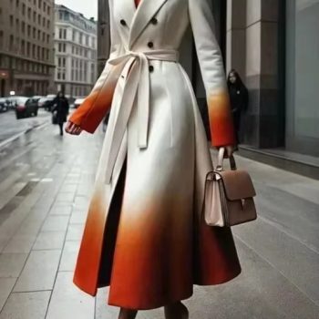 New York’s Fashion 2025 New Autumn Winter Tied Waist A-Line Outerwears Women Fashion Gradient Color Long Sleeves Notched Collar Trendy Coats