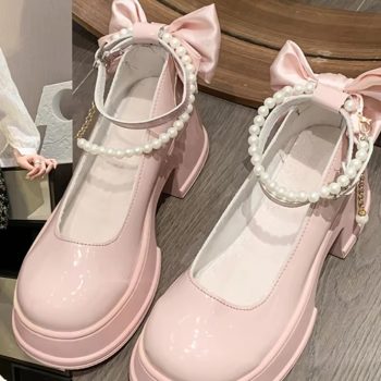 New York’s Fashion Pink Beaded Mary Jane Shoes Women’s High-heeled Shoes Spring Autumn Wear Round Toe Shallow Sakura Pink Jk Uniform Platform Shpes