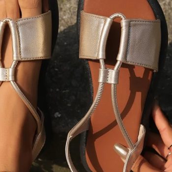 New York’s Fashion Women’s Shoes 2023 Summer Ankle Strap Women’s Sandals Beach Flip Flops Fashion Gold Flat Roman Women Sandals