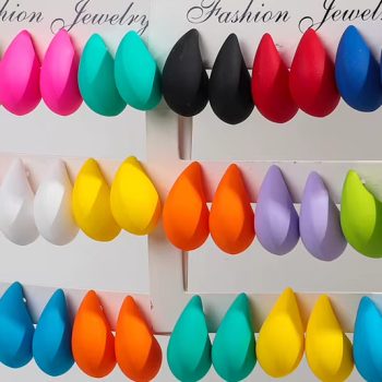 New York’s Fashion 9Pair/Set Acrylic Small Chunky Waterdrop Earrings Dupes for Women Matte Colorful Dome Tear Drop Earring Hoops Trendy Jewelry