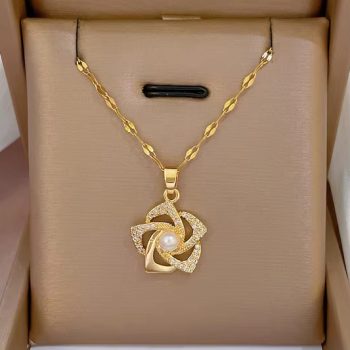 New York’s Fashion South Korean Fashion Tulip Necklace with Premium and Small Design Set with Rhinestone Necklace for Women