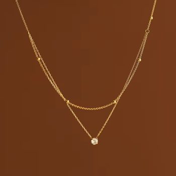 New York’s Fashion Stainless Steel Exquisite Single Zircon Pendant Double Layer Chain High Quality Textured Necklace Waterproof Trendy Jewelry
