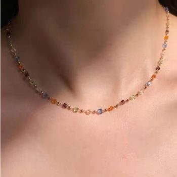 New York’s Fashion Simple Colorful Square Acrylic Choker Fashion Gold Color Bead Chain Necklace Vintage Crystal Necklace For Women Party Jewelry