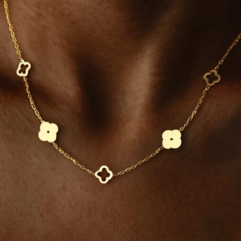 New York’s Fashion Stainless Steel Lucky Hollow Design Four-Leaf Clover Necklace Women’s Simple Commuter Fashion Collarbone Chain Jewelry Gifts