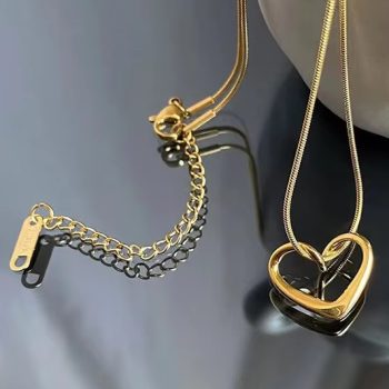 New York’s Fashion Vintage Stainless Steel Heart-Shaped Pendant Necklace 18K PVD Gold Plated Tarnish Free Waterproof Jewelry For Women