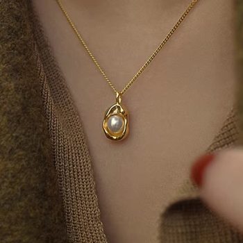 New York’s Fashion Fashion Inlaid Pearls Pendant Necklace for Women Luxury Design Stainless Steel Cuban Chain Wedding Woman Necklaces Jewelry