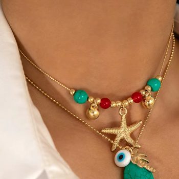 New York’s Fashion Vintage Starfish Green Stone Pendant Necklace for Women Fashion Eye Coconut Tree Necklaces Jewelry Party Girls