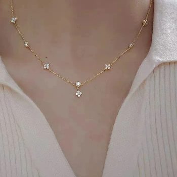 New York’s Fashion Zircon Four-leaf Flower Chain Necklace for Women New Niche Light Luxury Hot Fashion Collares Choker Accessories