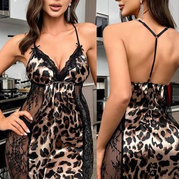 New York’s Fashion New Arrival Women’S Lace Halter Backless Nightdress Plus Size Leopard Print Seductive See-Through Women’S Sexy Lingerie