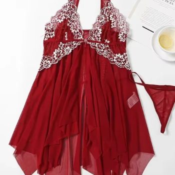 New York’s Fashion Women’s Nightgown – Sexy Lace Front Closure Sleepwear, Floral Transparent Design, Erotic Lingerie for a Dreamy Night