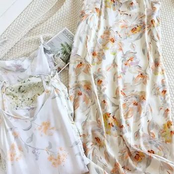 New York’s Fashion 2025 Spring/Summer New Women’s Sling Skirt 100% Viscose Fiber Sleeping Skirt Printed Sleeping Skirt Sexy Home Dress for Ladies