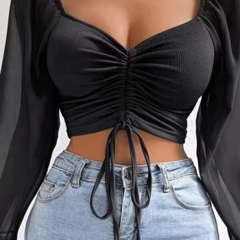 New York’s Fashion Autumn Sexy Women T Shirts Korean Lace Up Slim Long Sleeve Female Casual Tees Y2k Fashion New All Match Ladies Crop Tops