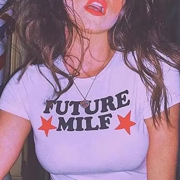 New York’s Fashion 2024 Summer Women’s FUTURE MILF Star Crop Top Sexy Party Y2K Silm Fit Short Sleeve T-Shirt Women Clothing Cool Girl
