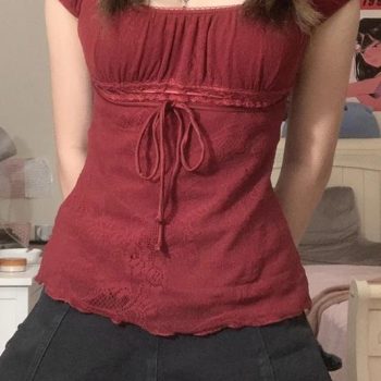 New York’s Fashion Elegant Lady Square Collar T-shirt Kawaii Bow Short Sleeve Pullovers Tees Y2K Vintage Fairy Grunge Women Crop Top Retro Clothes