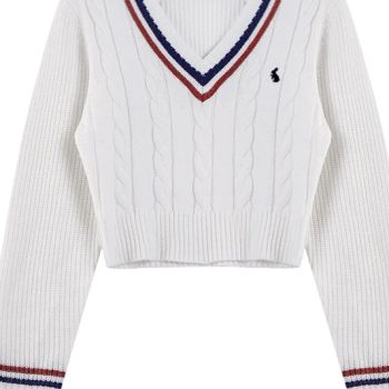 New York’s Fashion Korean Fashion Sweaters Women Autumn V-neck Y2K Cartoon Embroidery Knitted Tops Winter Soft Basic Long Sleeve Pullovers