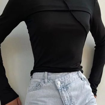 New York’s Fashion Y2K Vintage Top Jacket T-shirt Women Spring Summer Sexy O Neck Crop Top Korean Fashion High Street Zip Up Skinny Tees Egirl