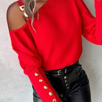 New York’s Fashion Fashion Lantern Sleeve Button Splicing Shirt Women Elegant Office Commuter O Neck Blouse Female Autumn Spring Daily Casual Tops