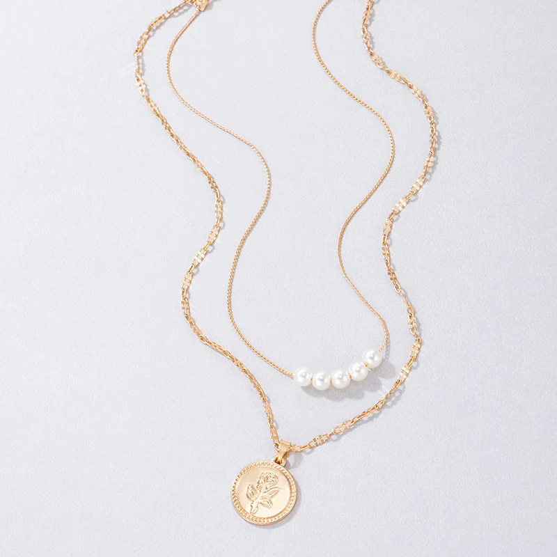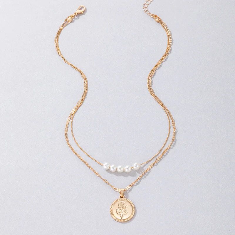 New York Fashion Bohemian Pearl Stone Pendant Necklace for Women Elegant Letter Rose Wafer Adjustable Wedding Party Jewelry Gift Wholesale