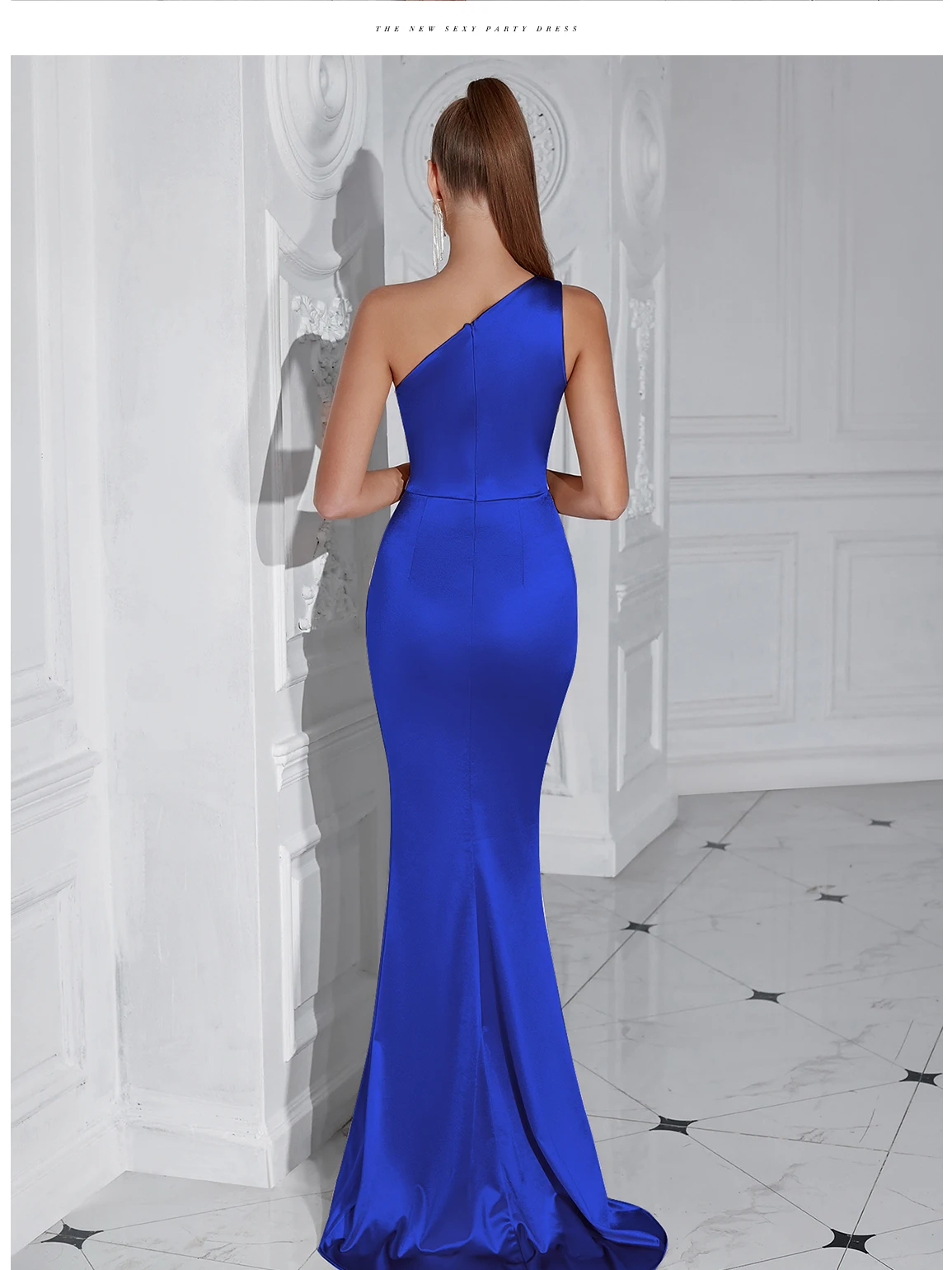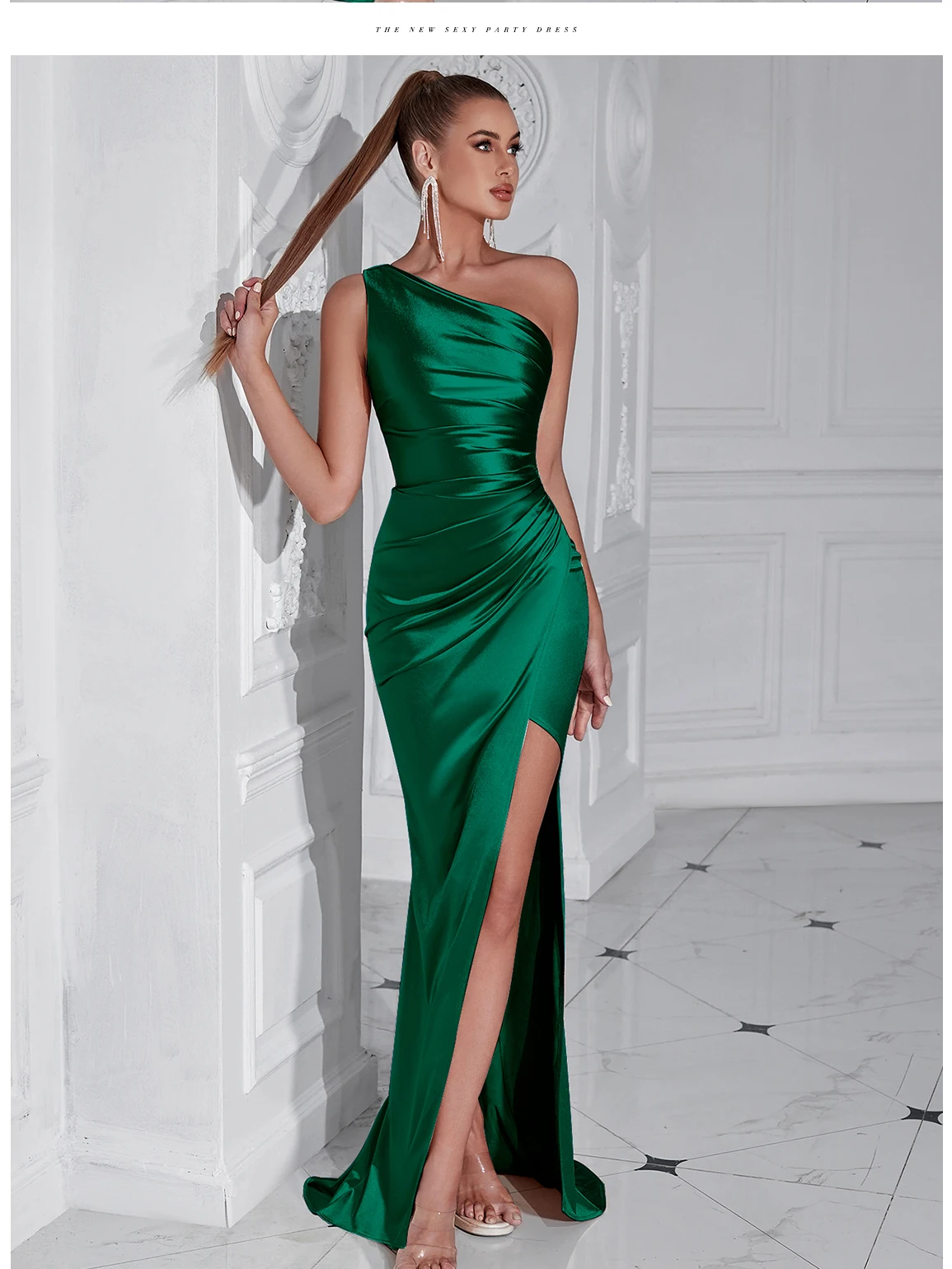 New York’ s Fashion One Shoulder Elegant Women’s Maxi Club Dress Summer Sleeveless Draped Fashion Celebrity Party Female Outfits Sexy Dresses