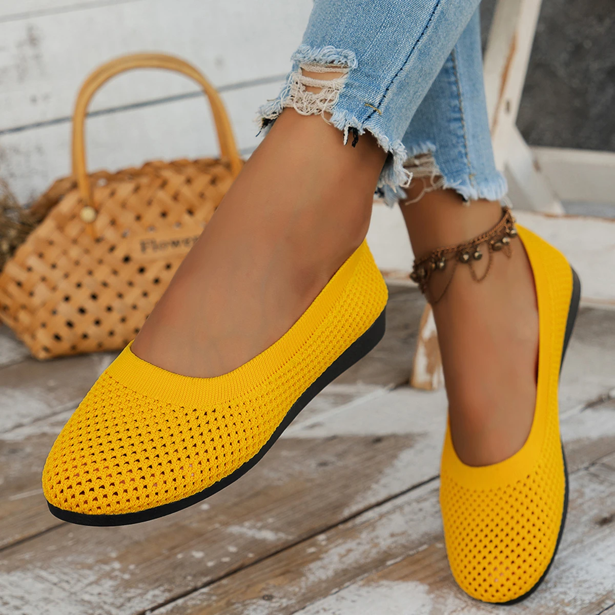 New York’s Fashion 2024 Spring and Autumn New Fashion Round Head Solid Light Mouth Candy Mesh Breathable Large Women’s Flat Shoes Single Shoe