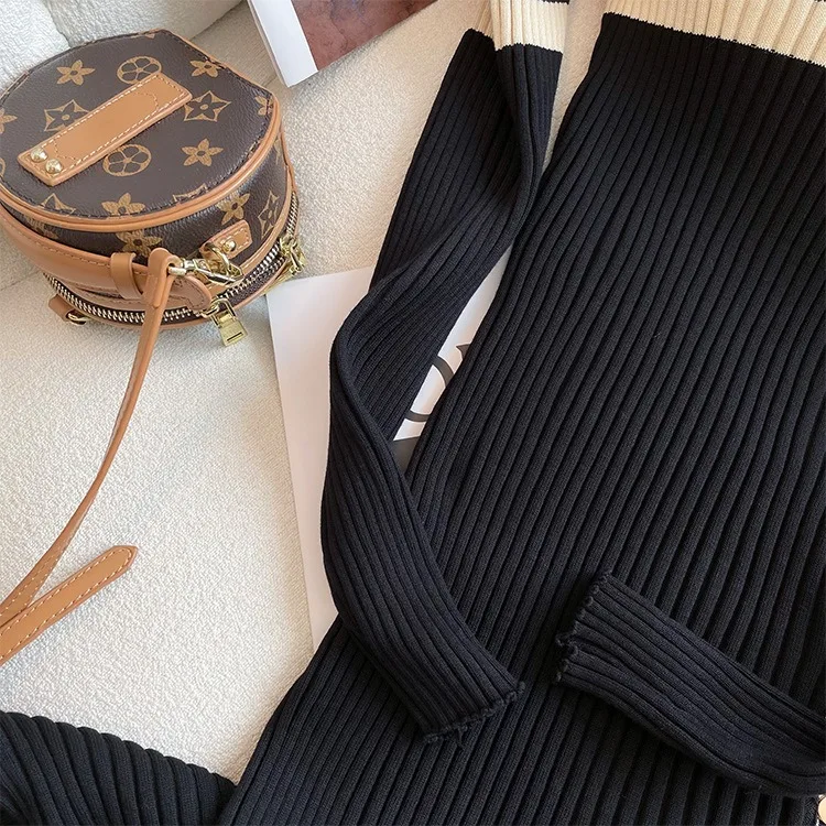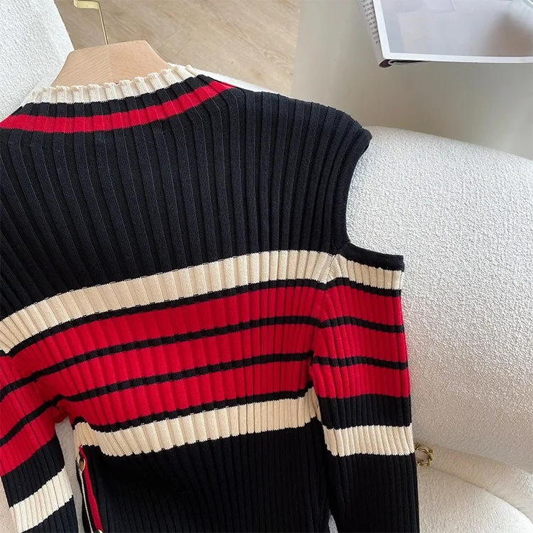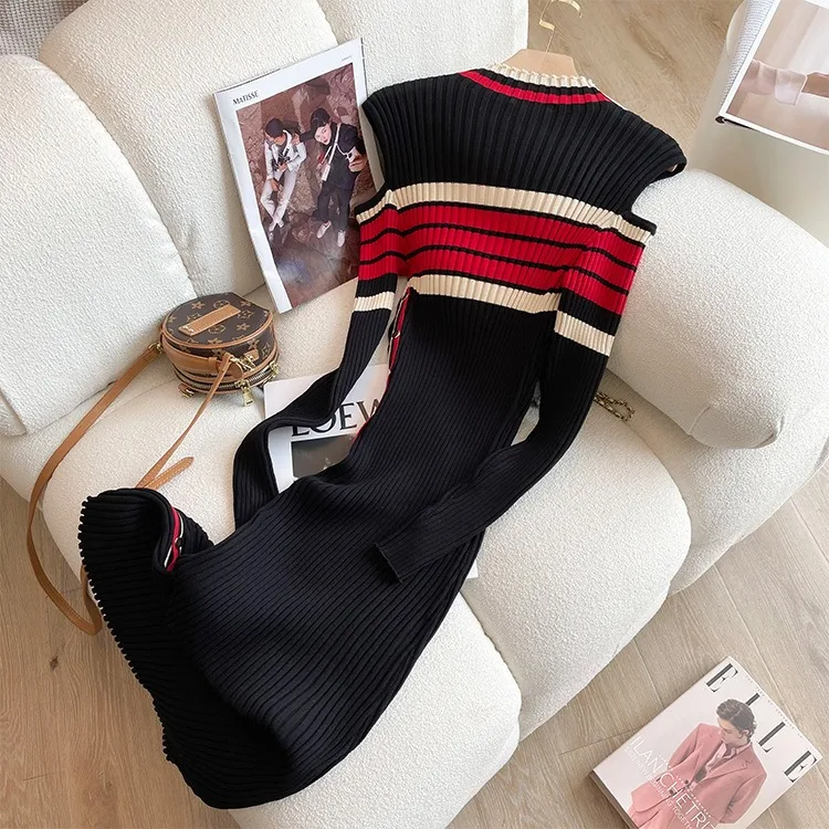 New York’s Fashion 2025 Autumn Winter Women Knit Sweater Dress Chic Fashion Cut Out Shoulders Long Sleeve Bodycon Dress Lady Office Dress