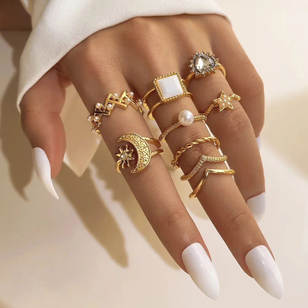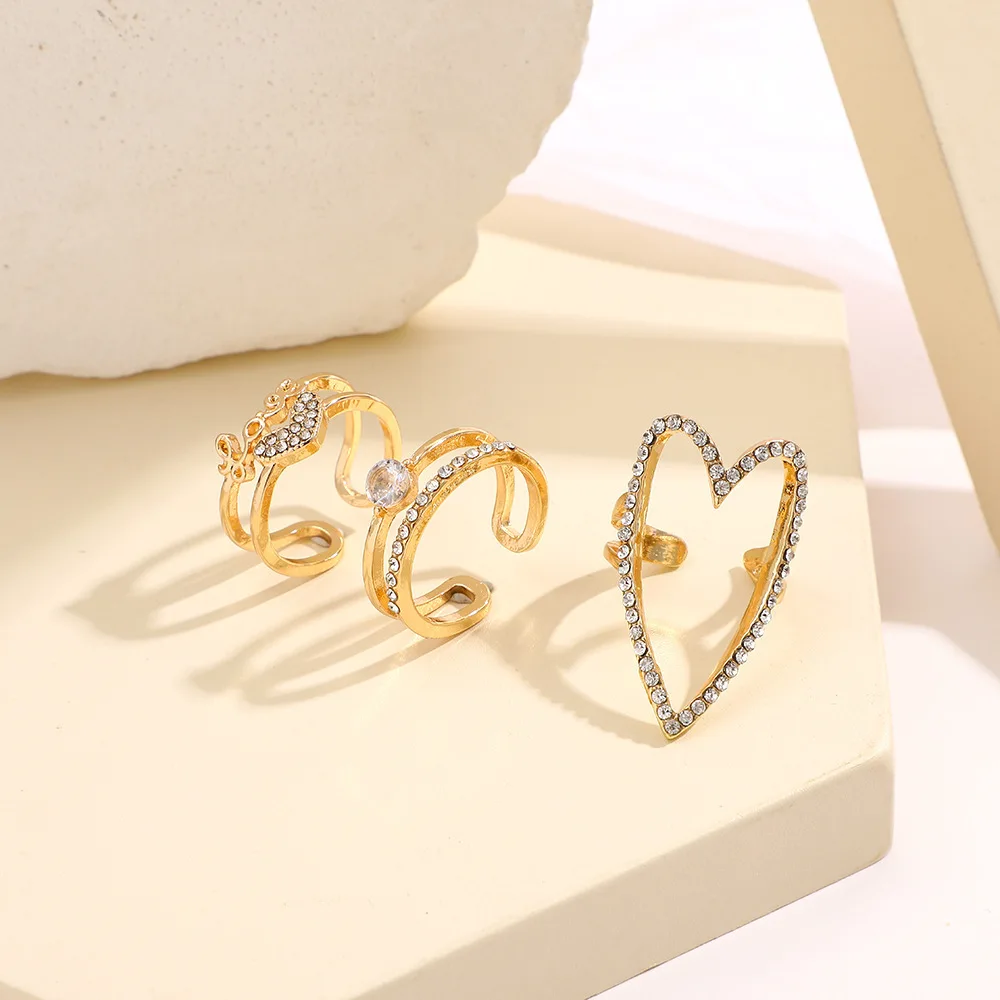 New York’s Fashion 21Pcs Gold Color Heart Rings Set Women Vintage Cross Butterfly Pearl Geometric Hollow Ring Fashion Wedding Party Festival Gifts