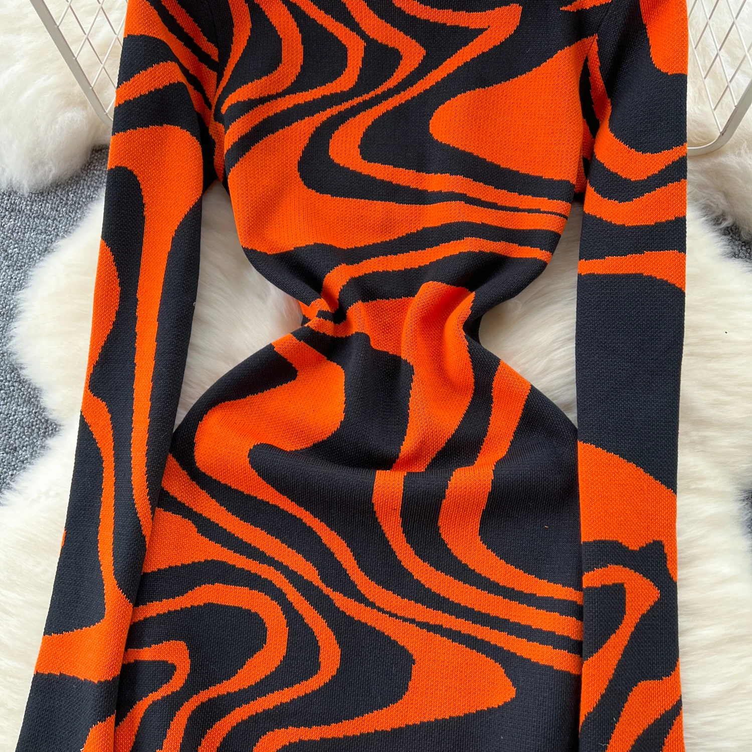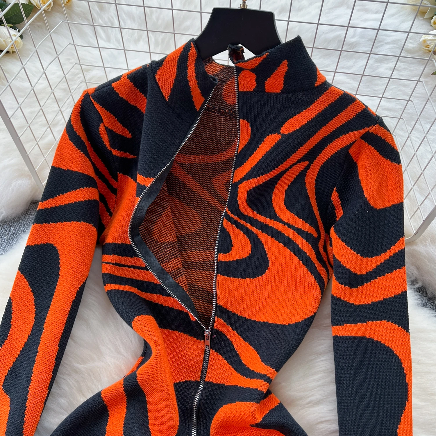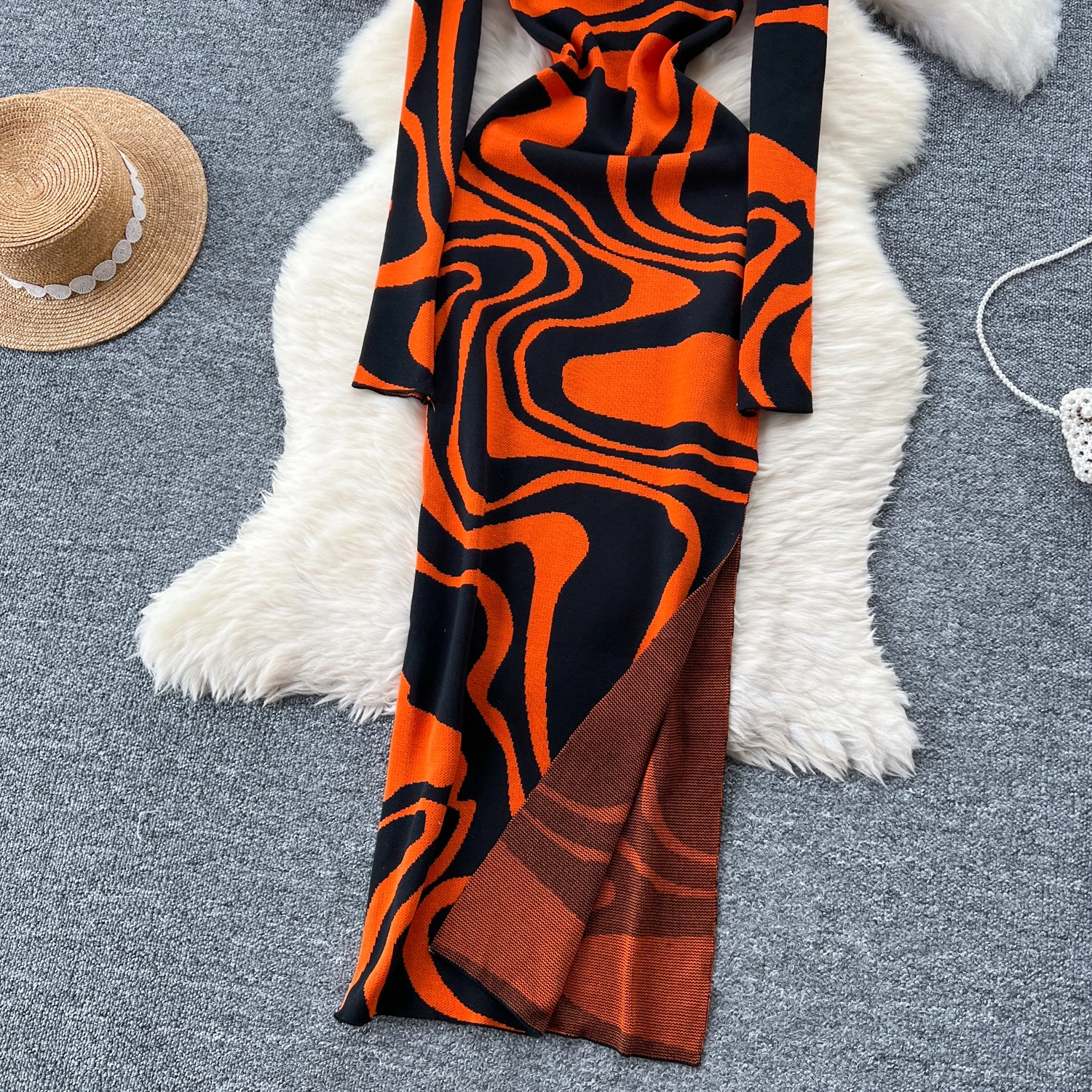 New York’s Fashion American Evening Party Dress 2024 Newest Ladies Turtleneck Zipper Print Bodycon Split Fashion Knitting Long Dresses