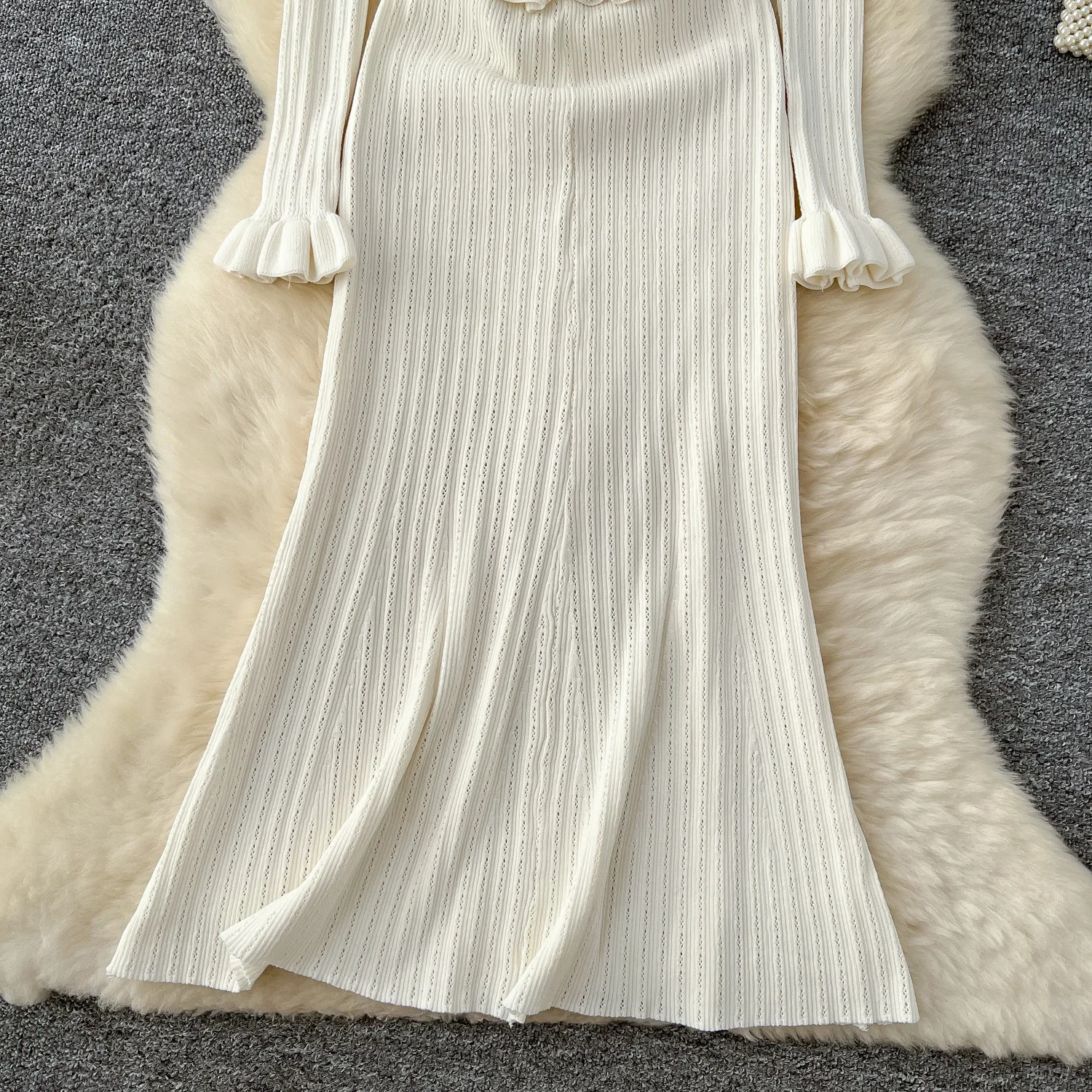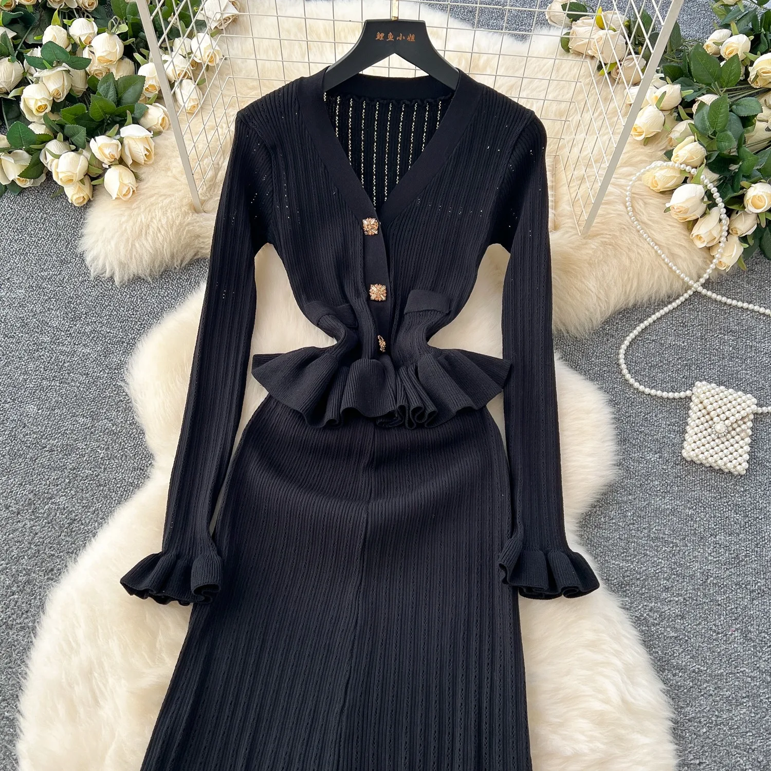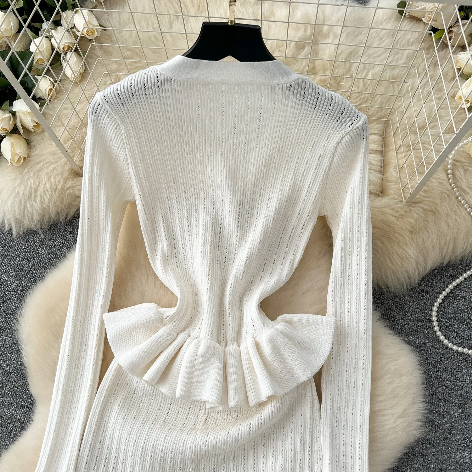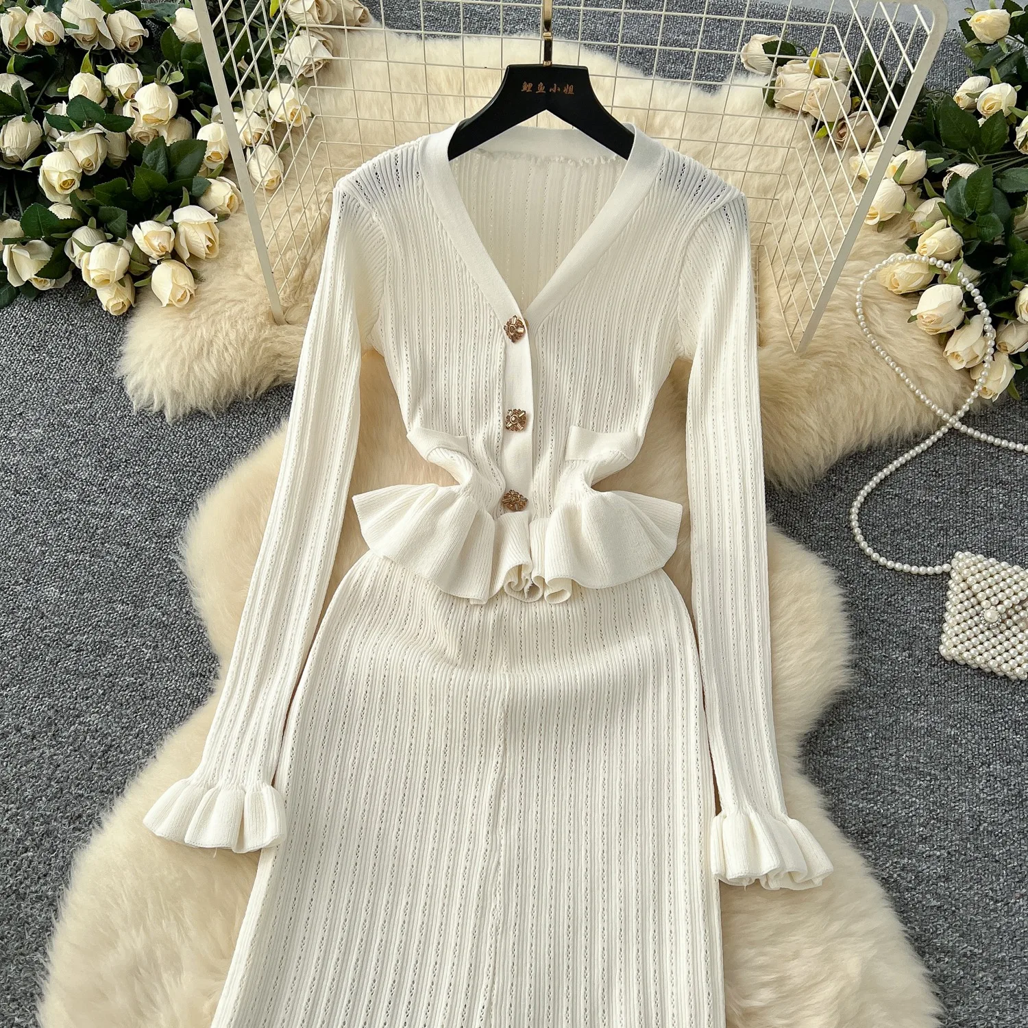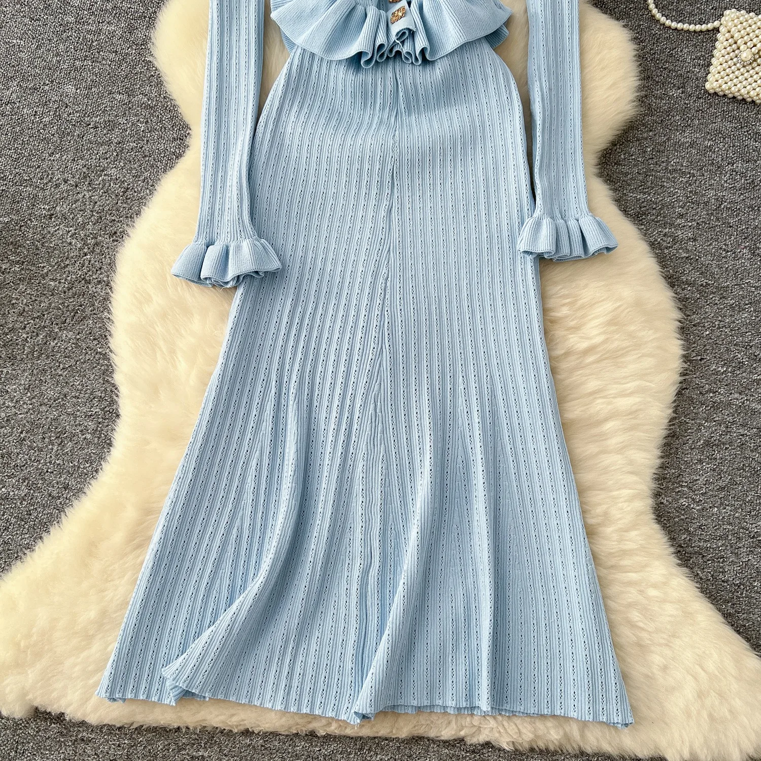 New York’s Fashion Brand Fashion One Piece Maxi Dress 2025 Woman Luxury V-neck Rhinestone Slim Waist Ruffled Knitted Dress Party Vestidos