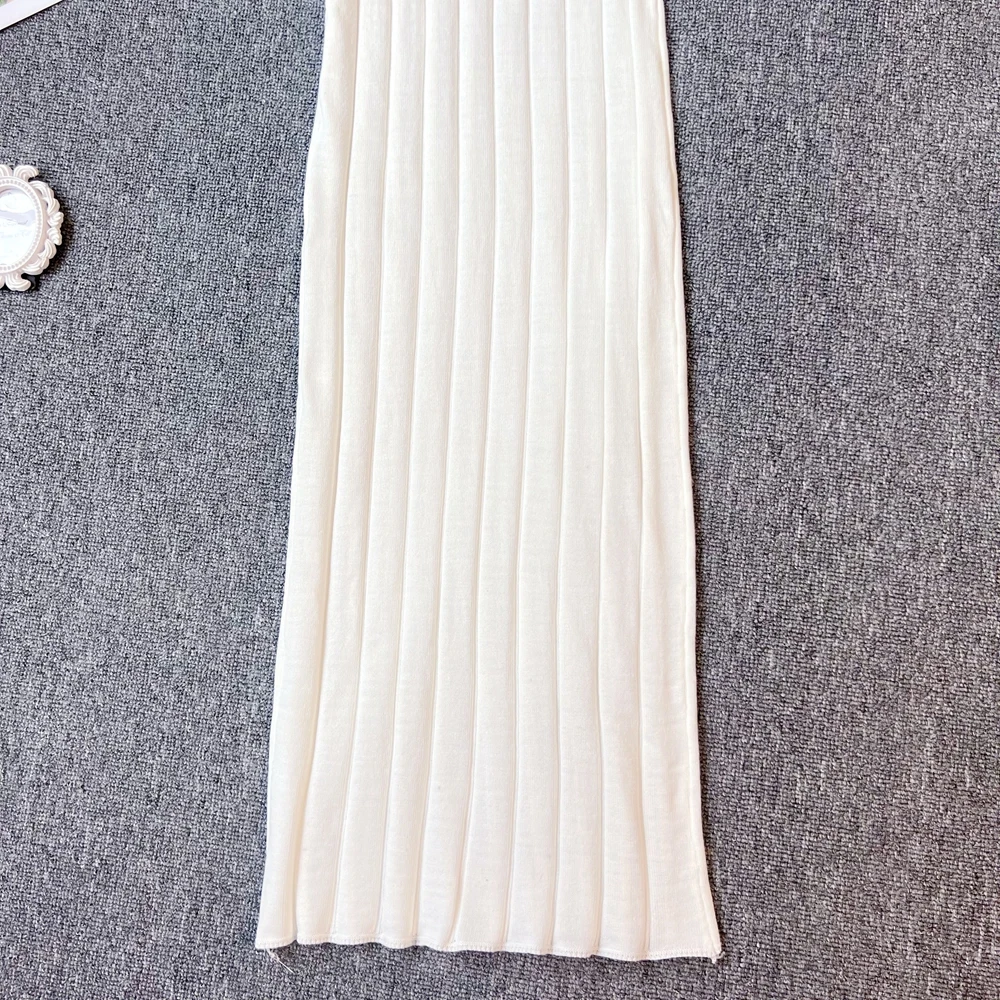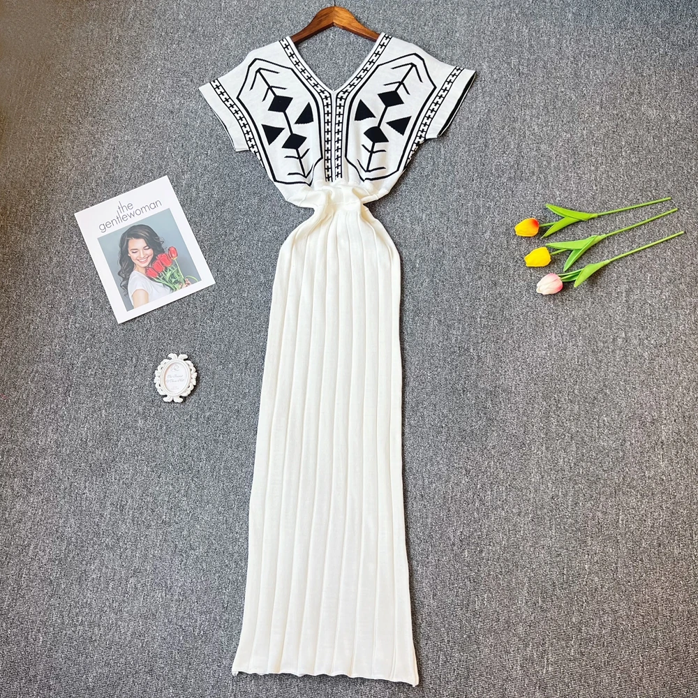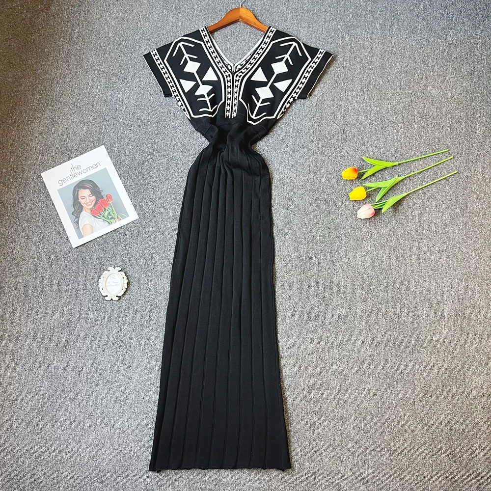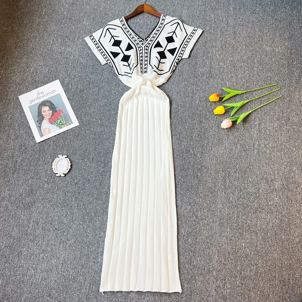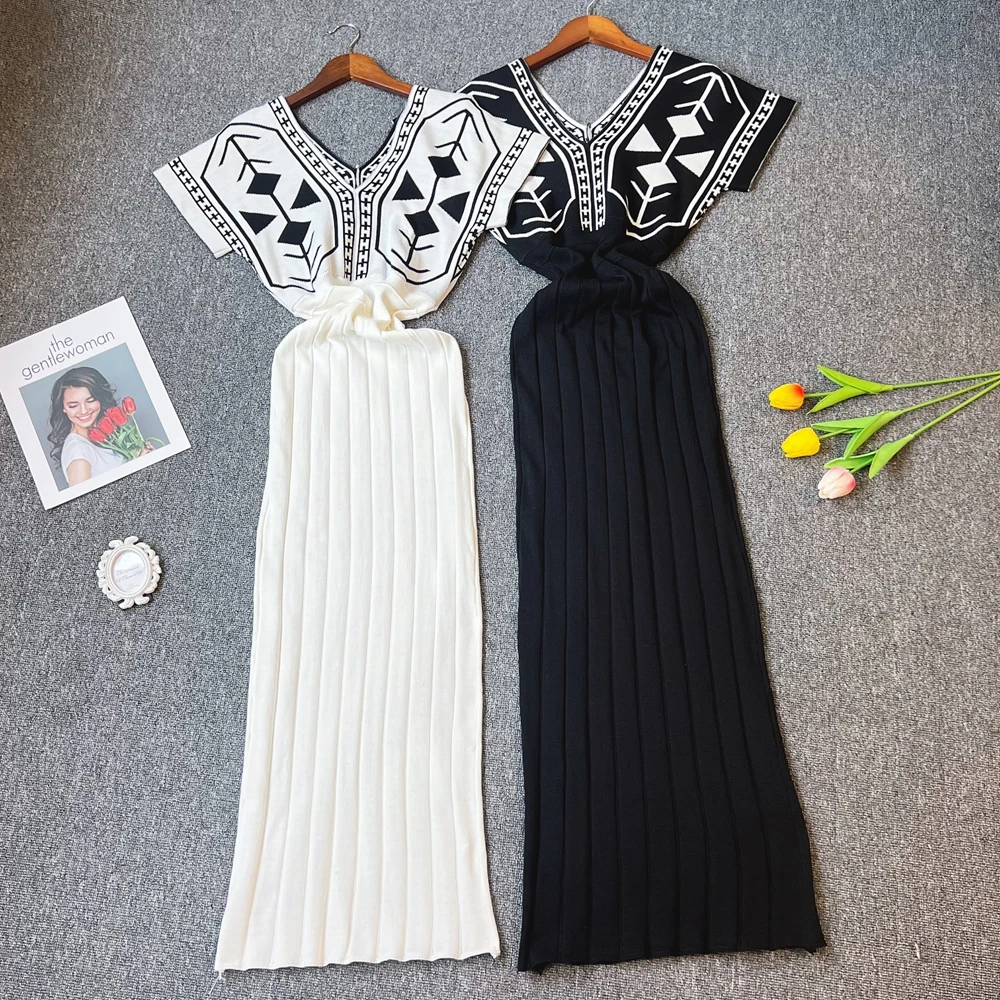 New York’s Fashion Chic Fashion Wrap Hips Vintage Knitted Maxi Dress 2025 Summer Women V-neck Slim Waist Harajuku Pleated Sweater Dress
