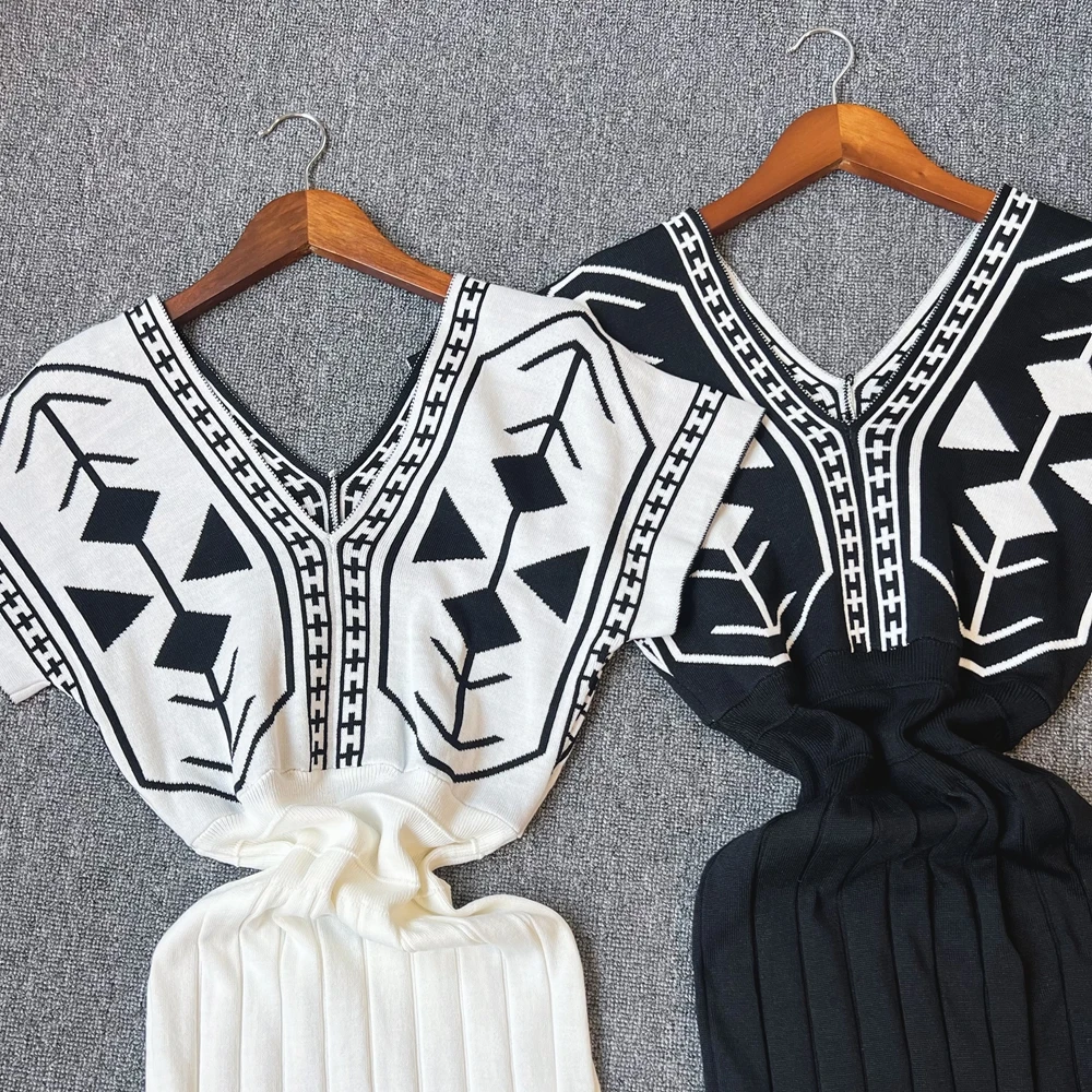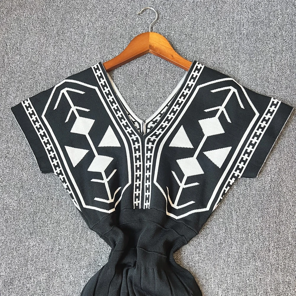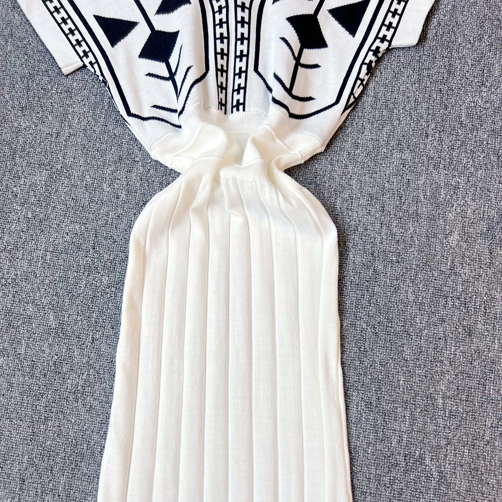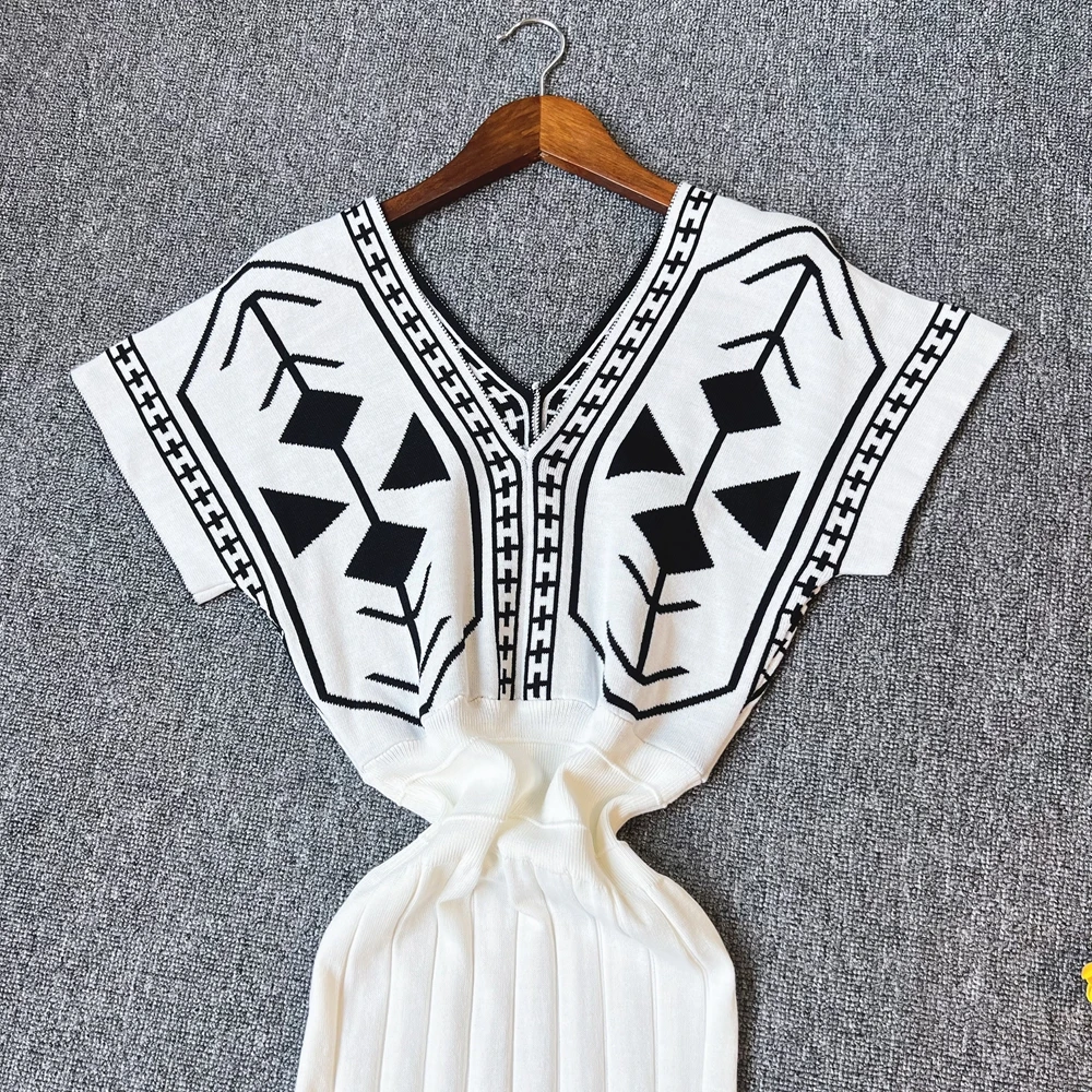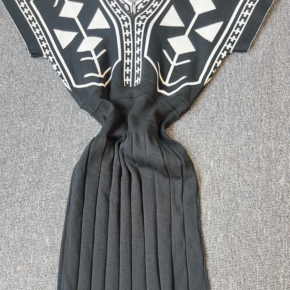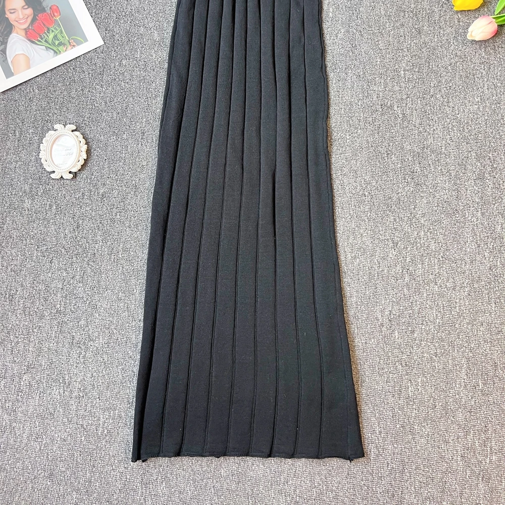 New York’s Fashion Chic Fashion Wrap Hips Vintage Knitted Maxi Dress 2025 Summer Women V-neck Slim Waist Harajuku Pleated Sweater Dress