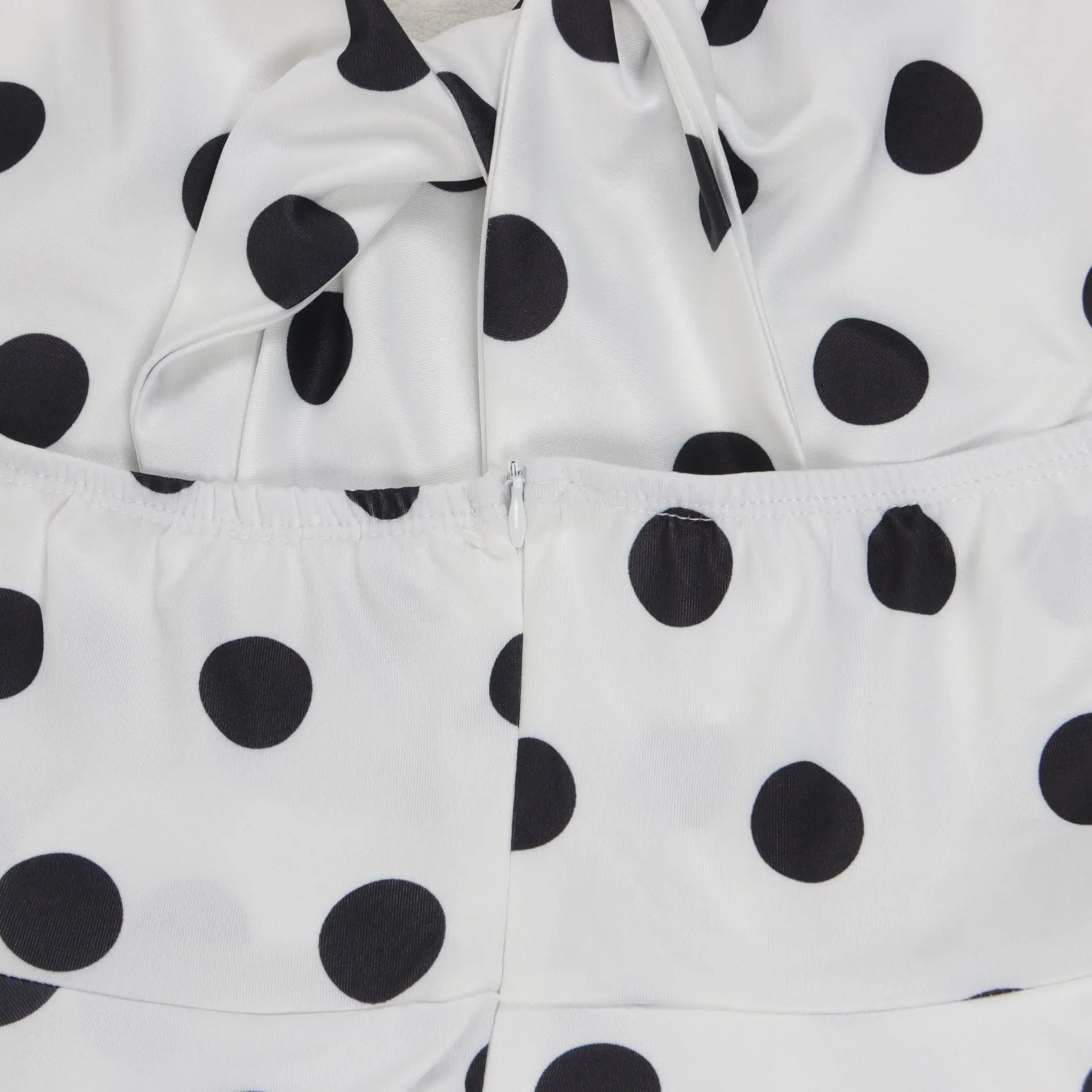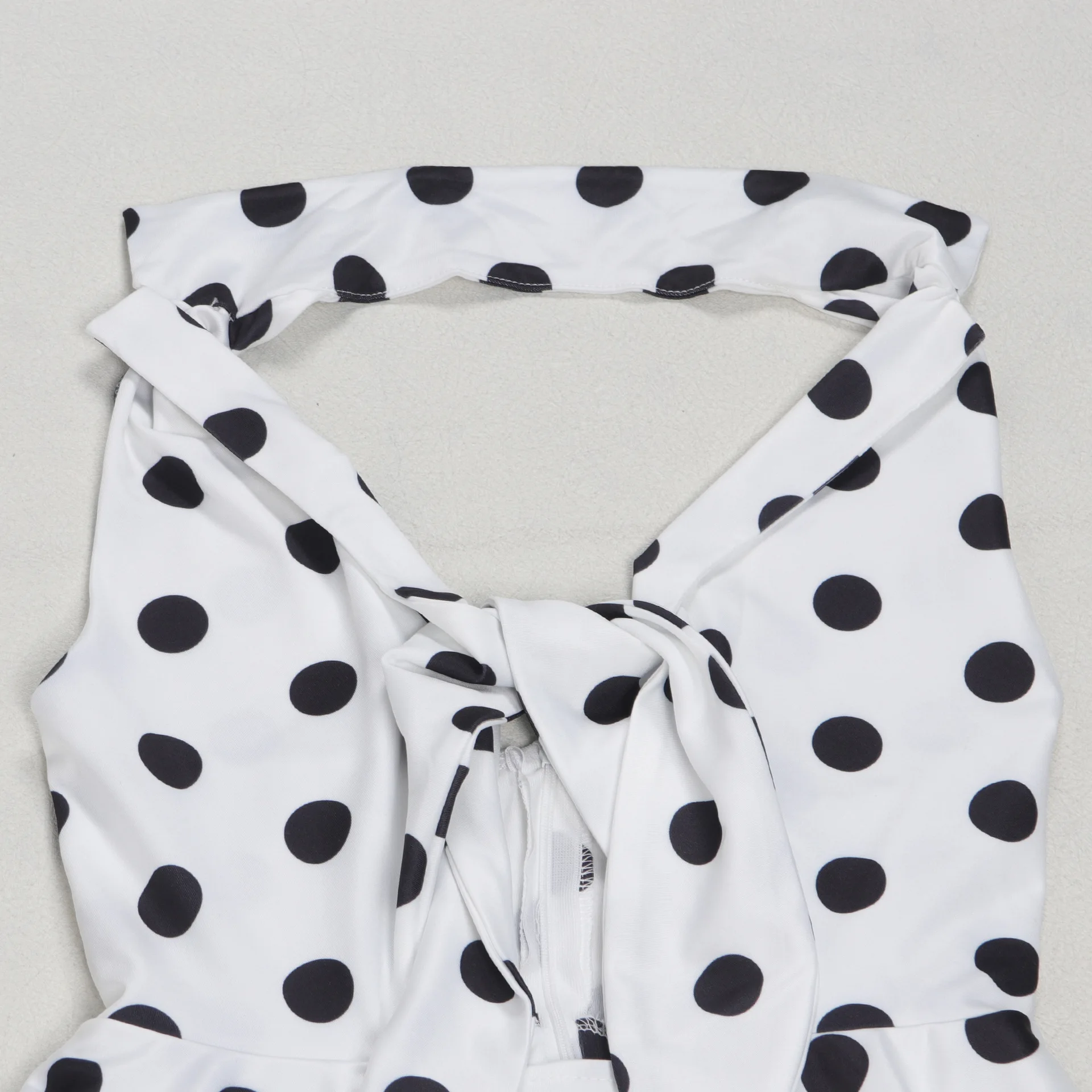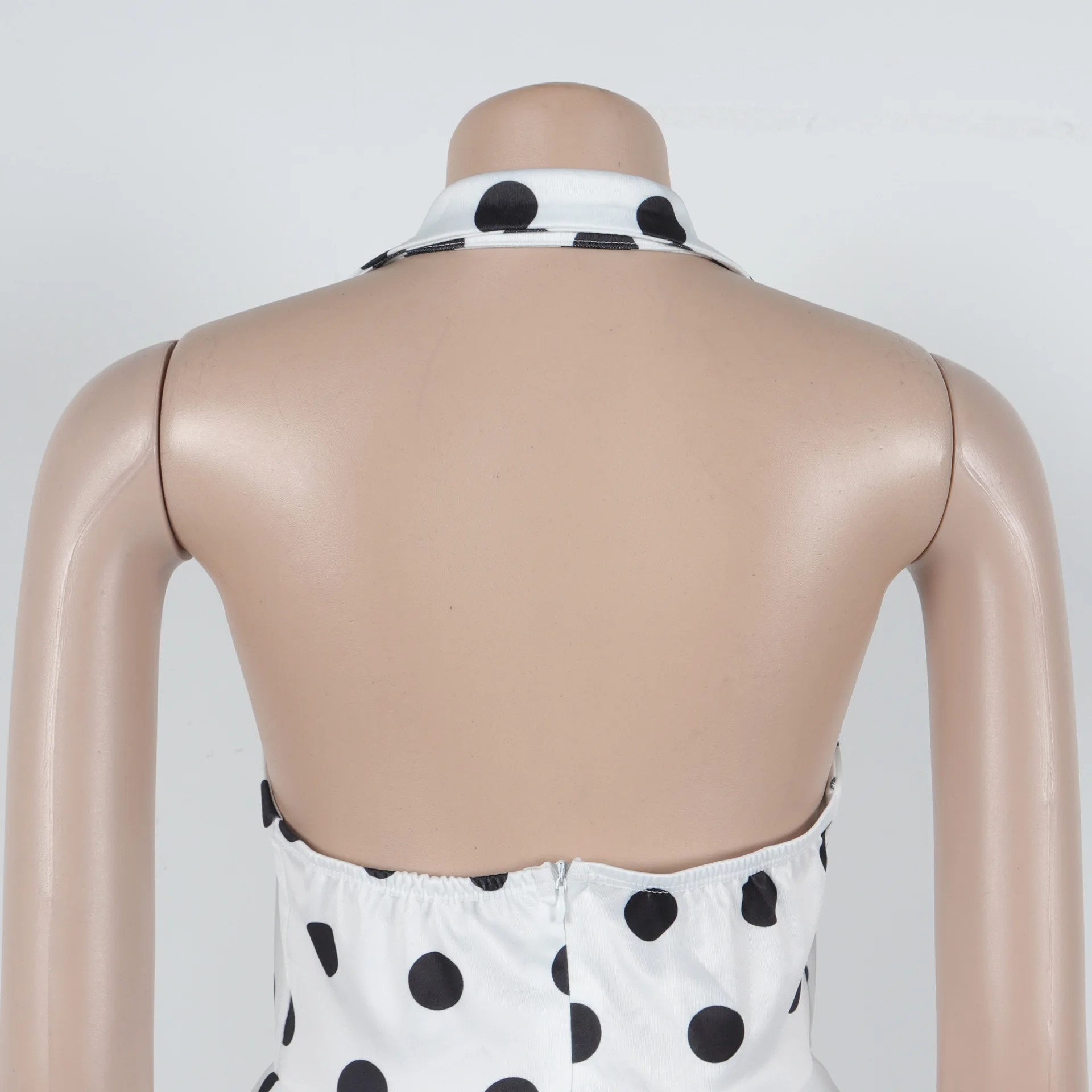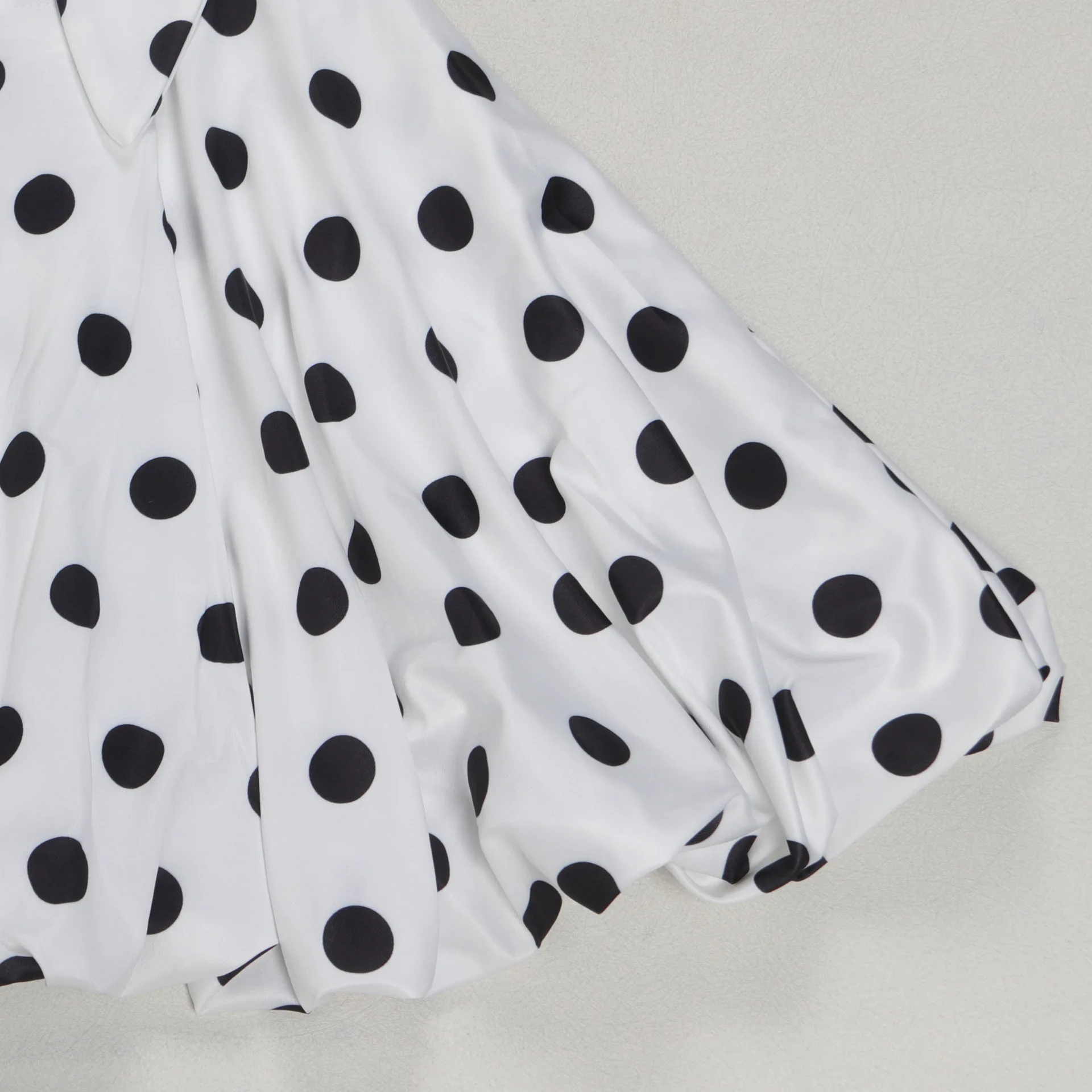 New York’s Fashion Elegant Polka Dot Print Dress with Tie Waist and Small Lapel Puff Skirt Design Inspired Halter Neck Dress for Women
