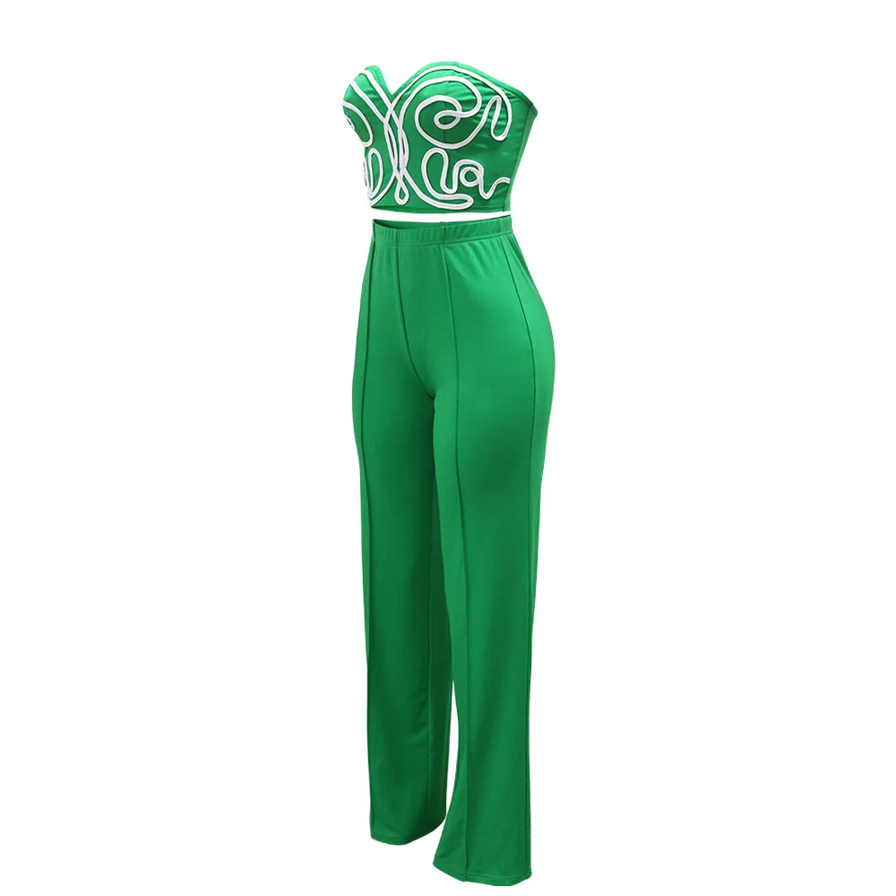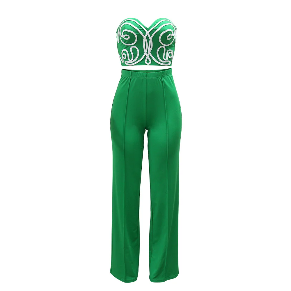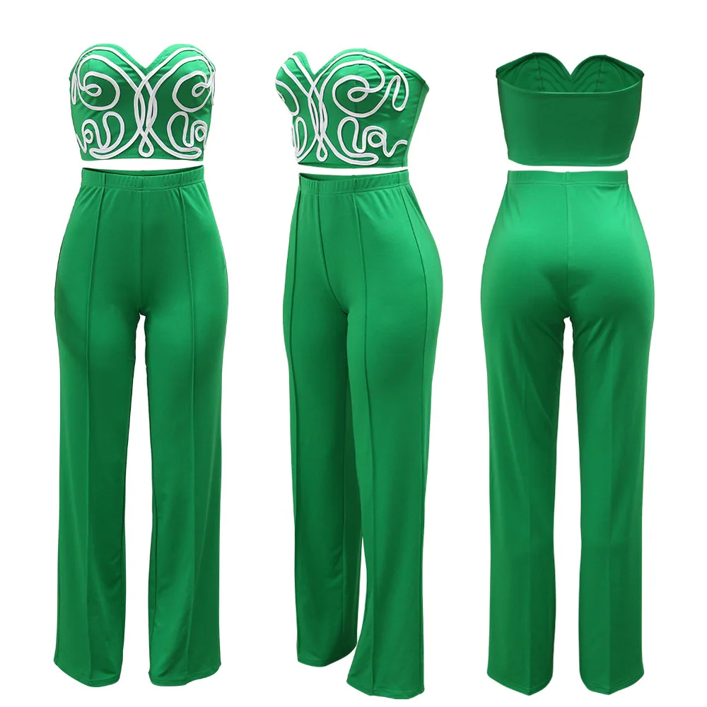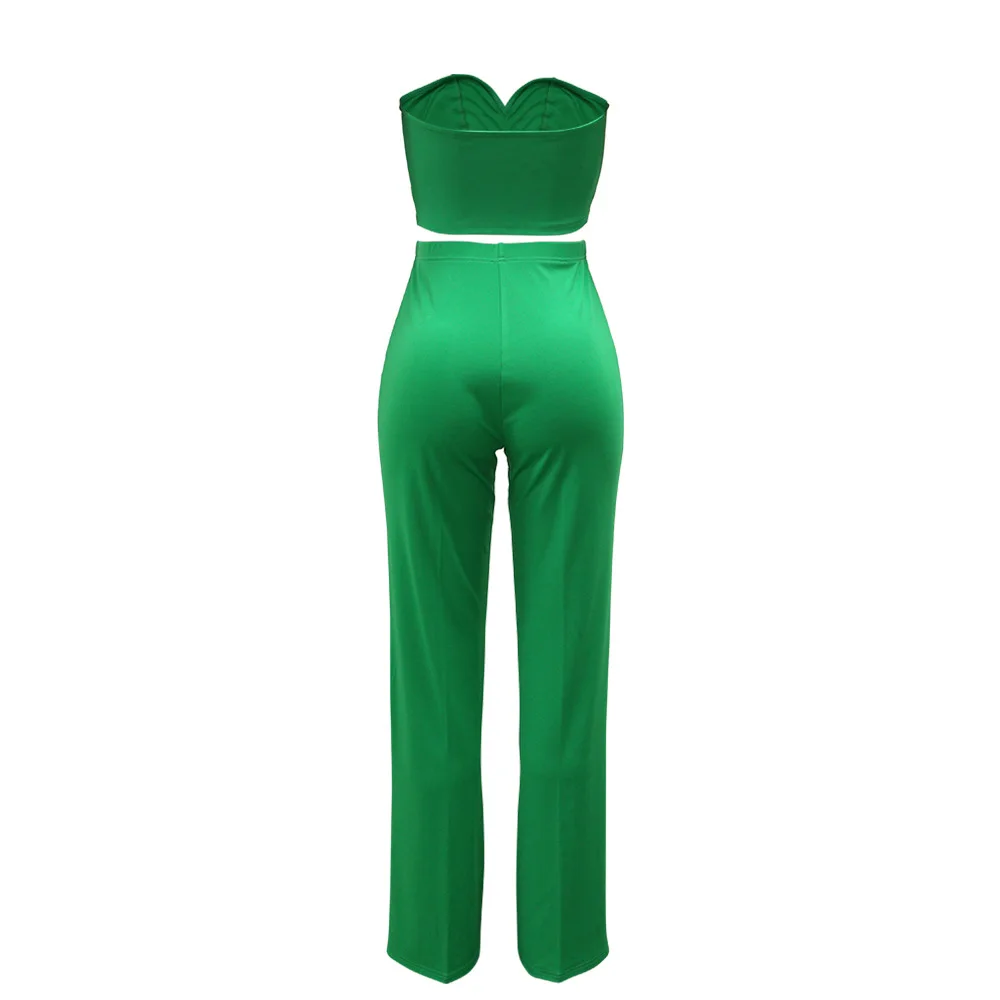 New York’s Fashion Elegant Strapless Crop Top and Solid Color Slim Fit Long Pants Two Piece Set Women Clothing Fashion Summer Outfit Trendy Look